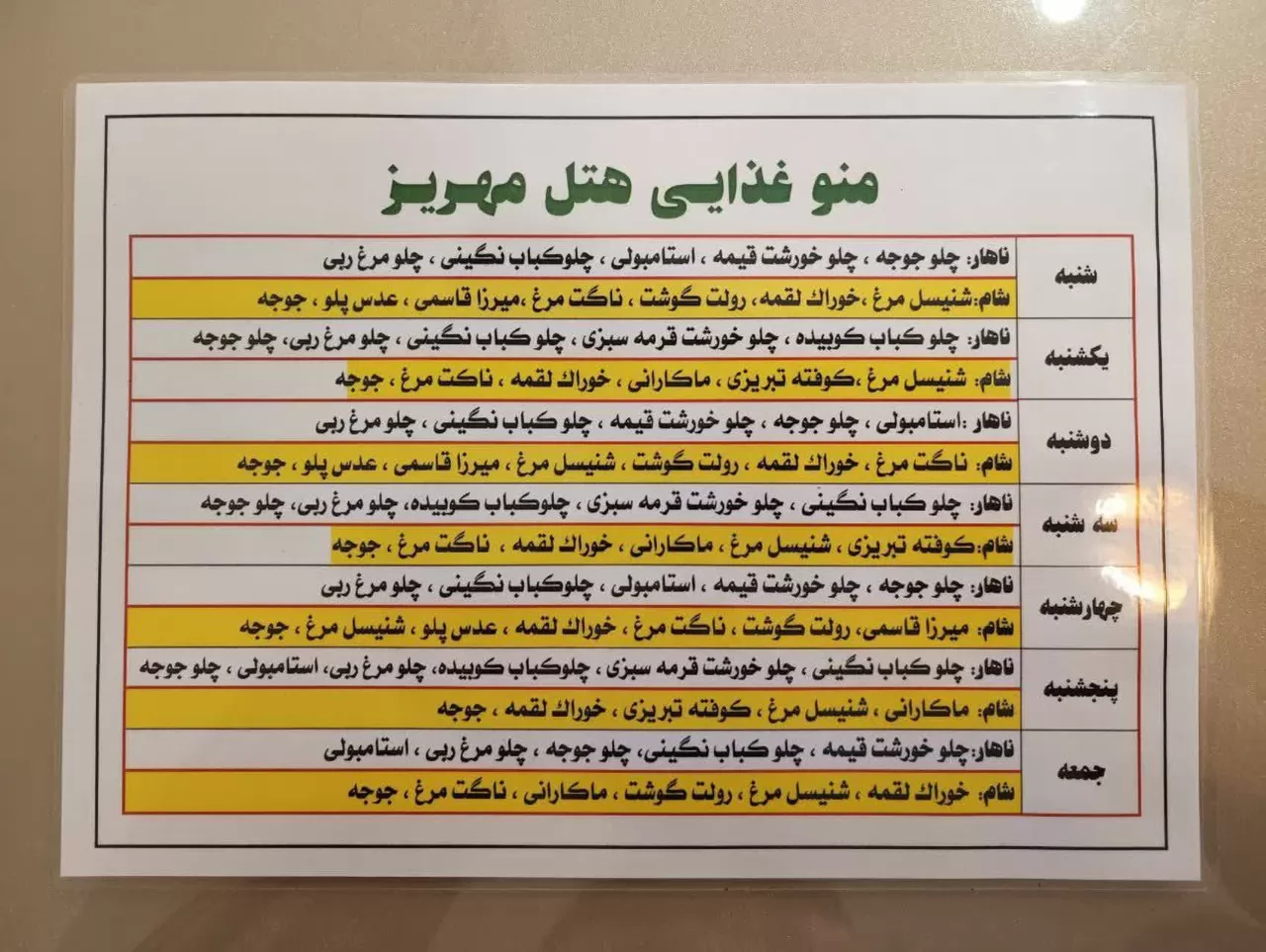 option room اقامت با صبحانه ، ناهار ، شام (منو انتخابی)