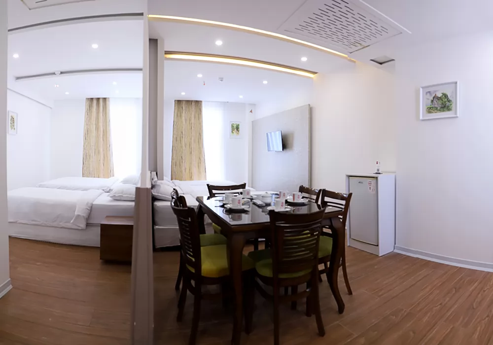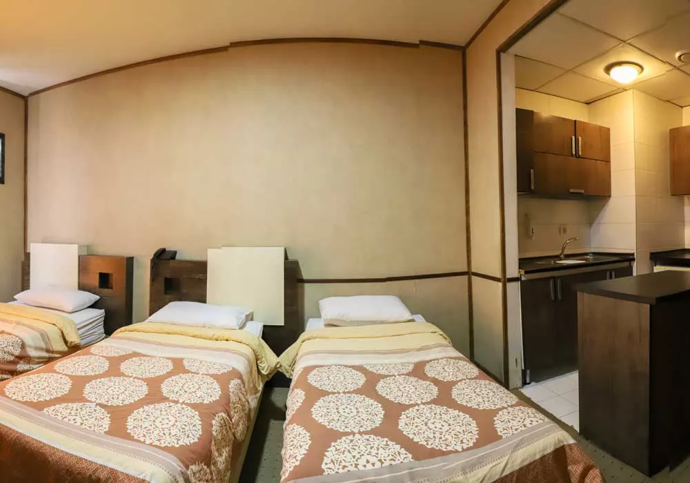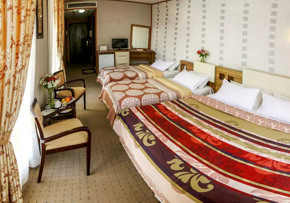 “سلام. ما با خانواده آخر فروردین ۱۴۰۴، سه شب یه اتاق چهار تخته رزرو کردیم. اتاقها به هم وصل بودن کانکت؛ یکی تخت دونفره داشت و اون یکی دو تا تخت یکنفره. پذیرش میگفت هتل حدوداً ده سال ساخت هست و به نظر من، تنها چیزی که تو این ده سال بازسازی شده بود، یه کاغذ دیواری بود که به دیوار اتاقها چسبونده بودن. بقیه وسایل خیلی قدیمی بودن؛ مثلاً لیوانها خط و خش زیاد داشتن، ملافههای روی تخت اصلاً تمیز نبودن و پر از مو بودن، انگار عوض نشده بودن. تلویزیون هم فکر کنم ۲۴ اینچ بود و تقریباً همه چیز اتاق، از دوش و کمد گرفته تا صندلی و یخچال و موکت، قدیمی بود. این اتاق رو تو اون بازه زمانی با صبحانه، حدود ۴ میلیون تومان اجاره کردم. ولی راستش رو بخواهید، در مجموع از اقامتم تو این هتل راضی بودم. نقاط ضعفش وسایل کهنه، کیفیت پایین غذای رستوران، صبحانه محدود و فاصله زیاد تا حرم بود. اما نقاط قوتش هم شامل ۵ نوبت سرویس رفت به حرم و یه سرویس برگشت صبحگاهی، برخورد خیلی مودبانه پذیرش و قرار گرفتن هتل تو مرکز منطقه پزشکی مشهد میشد. در کل، با توجه به اینکه سرویس حرم و صبحانه داشت و یه هتل بود، اجاره این اتاق برای یه خانواده ۴ نفره منطقی به نظر میرسید.”