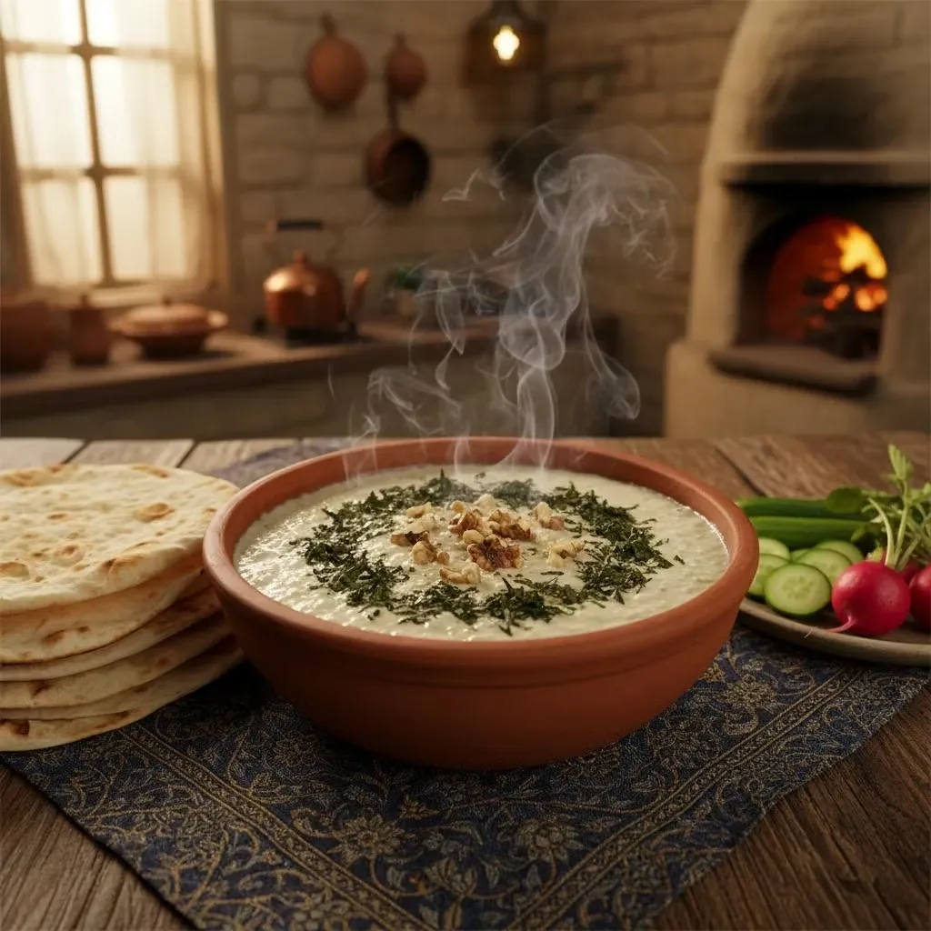 آش لخشک یک آش محلی خاص است که با رشتههای پهن و دستساز به نام لخشک، عدس و اسفناج پخته میشود. این غذا سرشار از آهن و کلسیم بوده و برای روزهای سرد سال یا تقویت بدن عالی است. اصالت این آش به گناباد برمیگردد اما در سفرهی مشهدیها هم محبوبیت و جایگاه خوبی دارد.اشکنه قروت